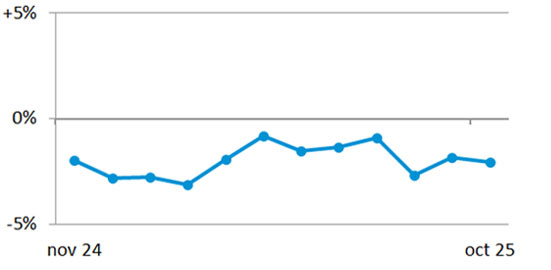 Swiss watch exports recorded a drop of 4.4% in October, to 2.2 billion francs. This further contraction took the cumulative result to 21.2 billion francs and slightly worsened the total decline, which is now -1.6%. More...